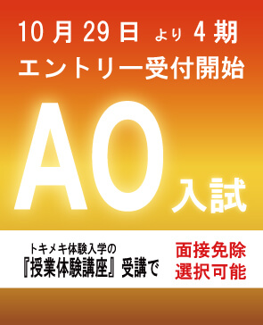 AO入学試験 4期 10月29日よりエントリー受付開始