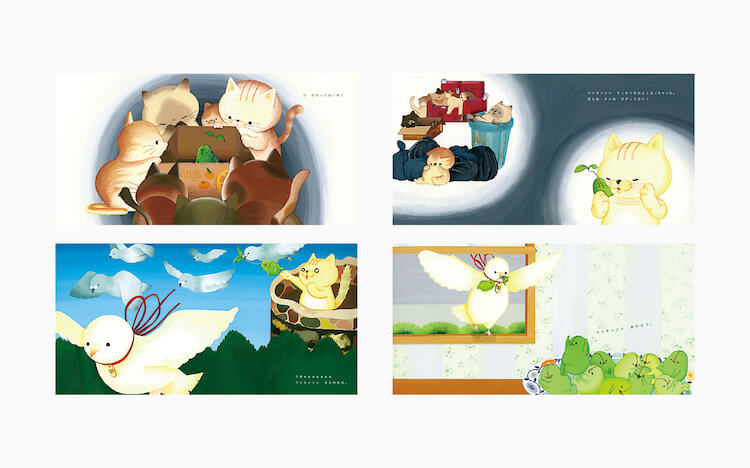 - 芽が生えている豆、マメキンソン。外を見てみたい、色んな事をしたい、他の豆には無いそんな好奇心や向上心が、マメキンソンの芽には込められています。マメキンソンがどんなキャラクターなのかを知ってもらいたいと思い、立体と絵本を制作しました。ちょっと格好つけで、気取った姿のマメキンソンにクスッと笑ってもらえたら嬉しいです。
