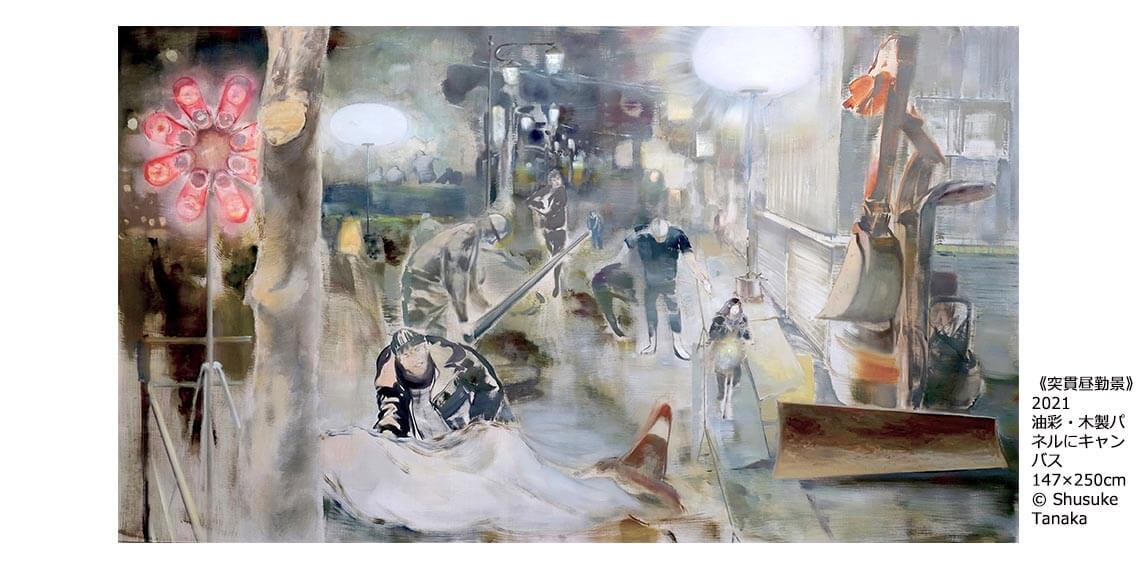 《突貫昼勤景》 2021 油彩・木製パネルにキャンバス 147×250 cm © Shusuke Tanaka